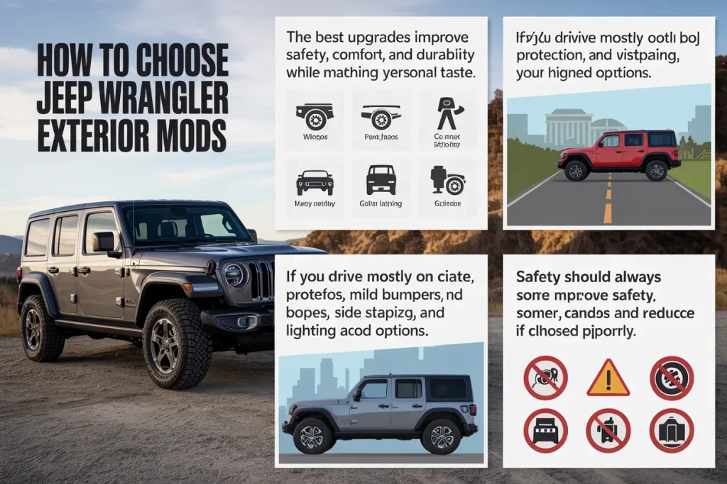 Learn practical steps to choose jeep wrangler exterior mods that fit your driving needs, budget, and style while improving protection, function, and overall road or trail performance.
