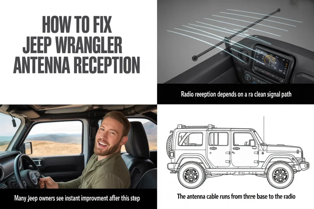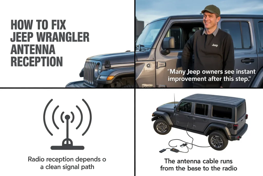 Learn how to fix jeep wrangler antenna reception with clear, proven steps. Fix jeep wrangler antenna reception issues caused by weak signal, loose parts, or poor grounding and enjoy clear radio sound again.