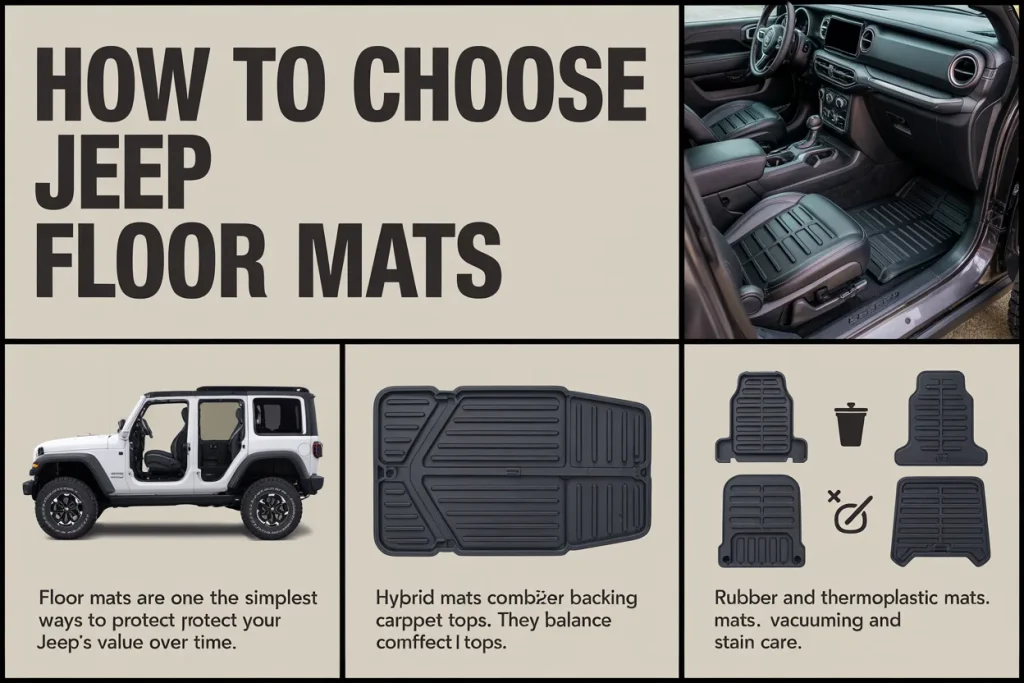 To choose jeep floor mats the right way, focus on fit, material, weather needs, and daily use so your Jeep stays clean, safe, and comfortable on every drive.