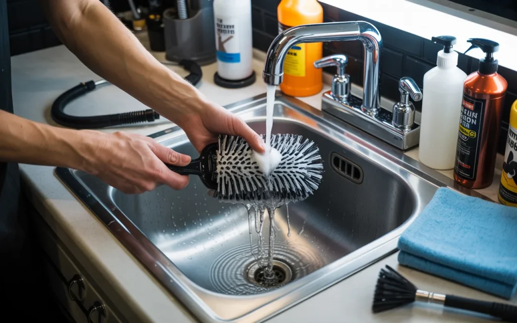 Each brush type needs a tailored approach. For natural hair brushes, use lukewarm water and mild soap to preserve oils. Avoid hot water, which can make them brittle. After drying, comb through with a wide-tooth comb to align hairs.
