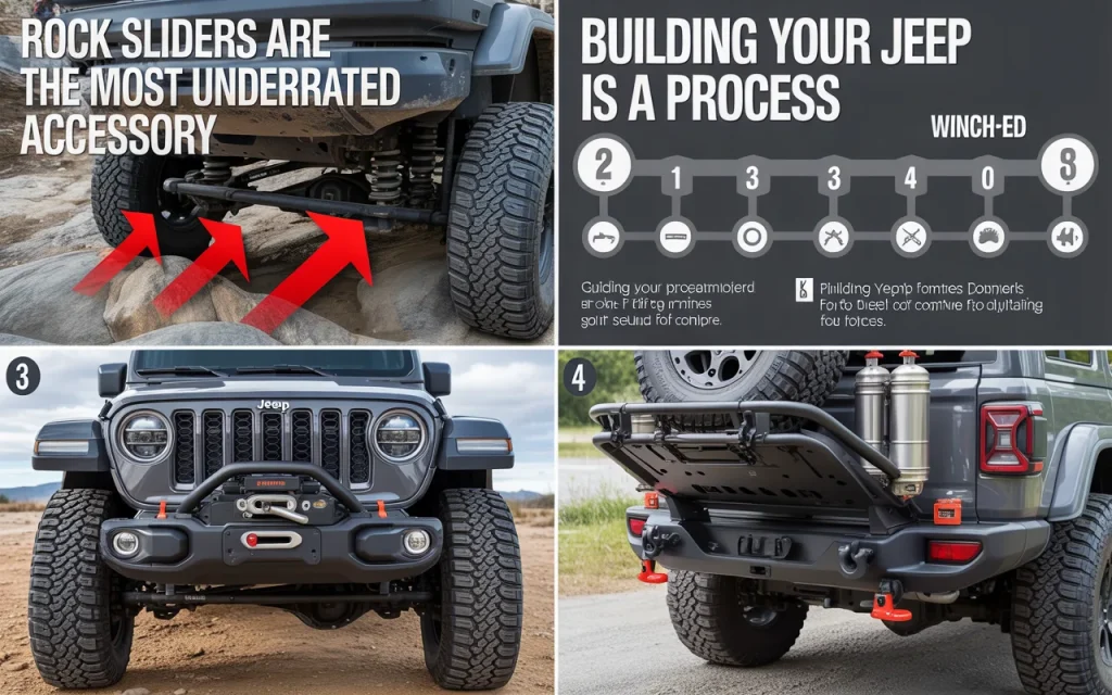Building your Jeep is a process. You do not need everything at once. Start with protection. Add sliders and a rear bumper. Then add recovery gear and lights. Then focus on cargo solutions and comfort.