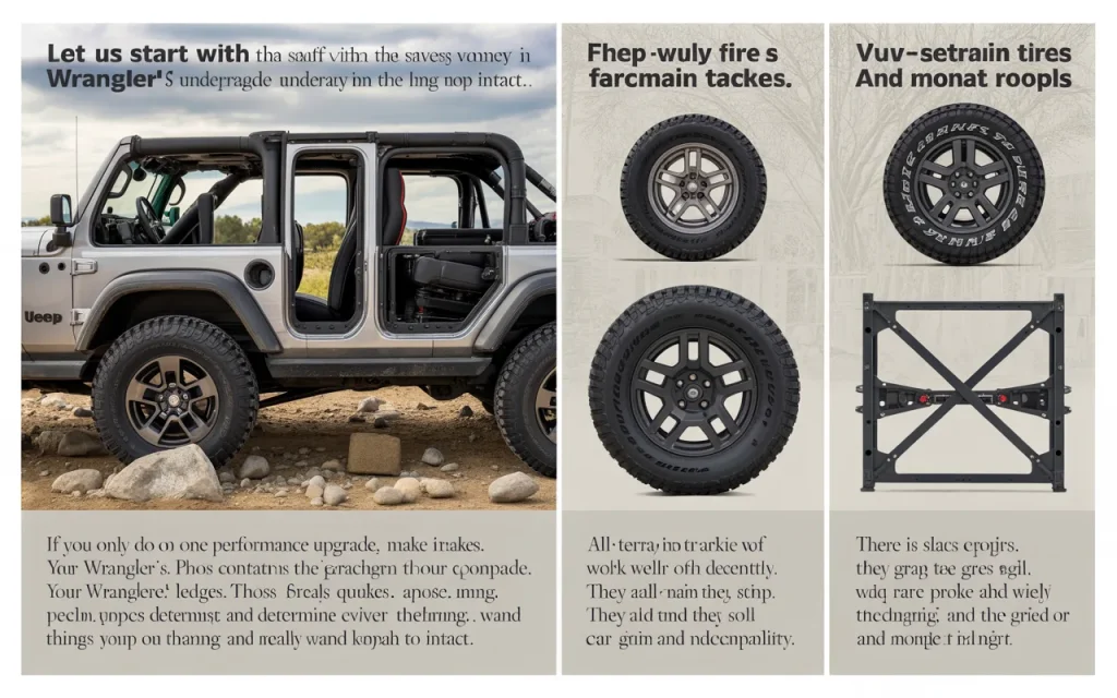 If you only do one performance upgrade, make it tires. Your Jeep contacts the ground in four small patches. Those patches determine everything about traction, braking, and capability.