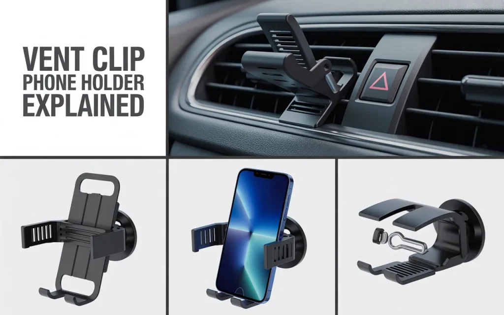 A vent clip phone holder is a small device that attaches to your car’s air conditioning vents. It holds your smartphone so you can see maps, take calls hands-free, or change music safely while driving .