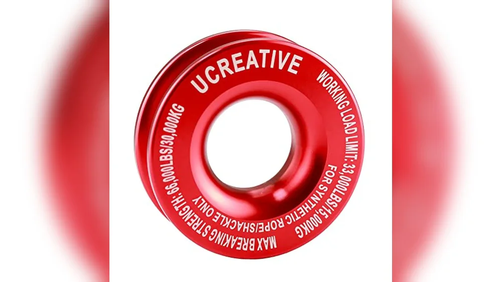 The Ucreative Winch Snatch Recovery Ring is a CNC machined 7075 aluminum recovery tool designed to replace traditional heavy snatch blocks with a lightweight alternative. It solves the problem of potential damage to soft shackles by offering a smooth, durable surface that reduces wear during recovery operations.