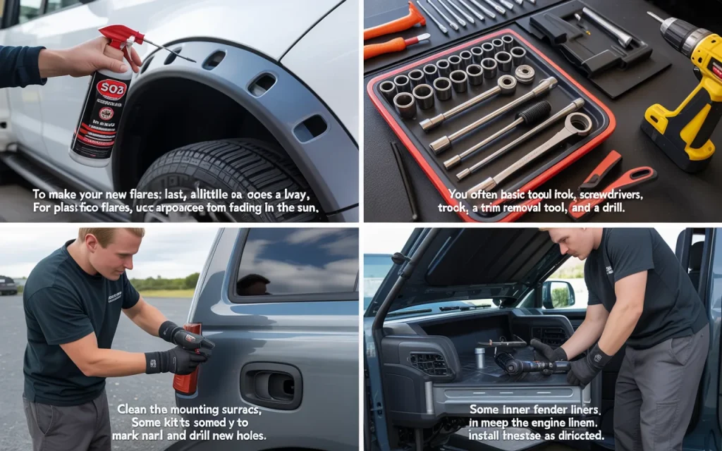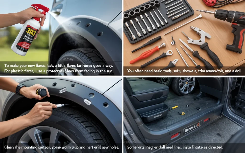 To make your new flares last, a little care goes a long way. For plastic flares, use a protectant like 303 Aerospace to keep them from fading in the sun. Clean them with soap and water, not harsh chemicals. For steel flares, check for scratches in the paint that could lead to rust, and touch them up quickly. Tighten any bolts if they become loose after driving off-road.