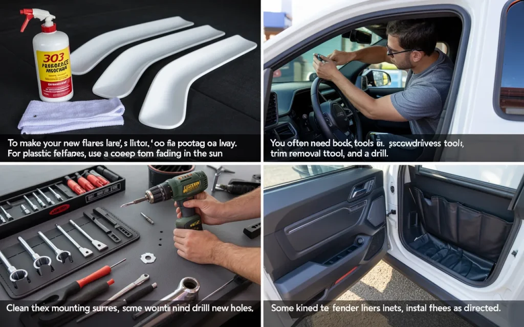 - Remove the Old Flares: Carefully remove the factory bolts and clips. A trim tool helps avoid breaking the plastic.
